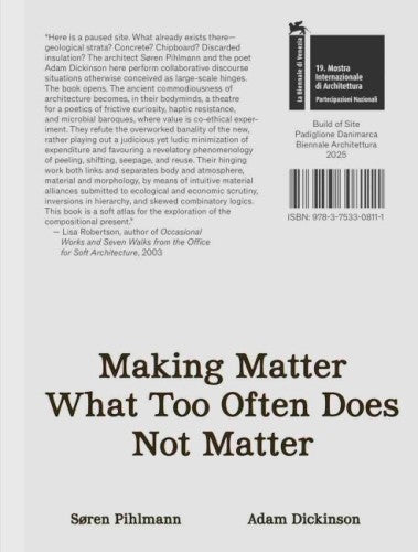 It is not possible to keep tearing down and building anew. Architecture must embrace the challenge of working with what already exists. What stories do these fragments tell about the buildings they might become? The task is to get closer to things, reading the potential of dirt, debris, and other existing materials through diverse forms of inquiry. This unusual book explores the implications of a site-derived practice and ethics. Featuring an extended, lyrical, and multifaceted dialogue between architect Søren Pihlmann and poet Adam Dickinson, it presents unconventional modes of analysis. From microbes to concrete, from metaphors to steel, the book offers a new model.